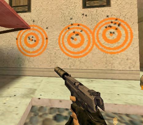 Итак, согласно опросам, usp, начальный пистолет контров, очень популярен. и у него есть чем гордиться! оптимальные боезапас и точность, почти бесшумность при использовании глушителя и масса других преимуществ. В этой статье я покажу вам результаты моей исследовательской работы, целью которой было определить в какую сторону отдача сбивает ваш прицел. Итак, начнем Изначально во всех тестах прицел был направлен в центр и мишени и не корректировался во время стрельбы, что необходимо для точности измерений. Если это важно, то пистолет находился в правой руке. I. Без глушителя. 1. стоя на месте, "автоматический" огонь здесь все довольно просто. разброс слегка вверх, но довольно сильно в ширину. Поэтому я считаю,что лучше всего стрелять в грудь. 2. в положении сидя, "автомат" Тут уже куда повысилась точность, но отдача как ни странно возросла. на мой взгляд, шея будет идеальной мишенью 3. в движении(пешком, движение к противнику, т.к. стрейф требует мастерства и разброс будт у всех разный), "автомат" (самая левая картинка. остальные 2 - предыдущие тесты для сравнения) при движении прицел сдвигается вправо, чуть-чуть вверх. тут надо стараться менить в голову или около неё